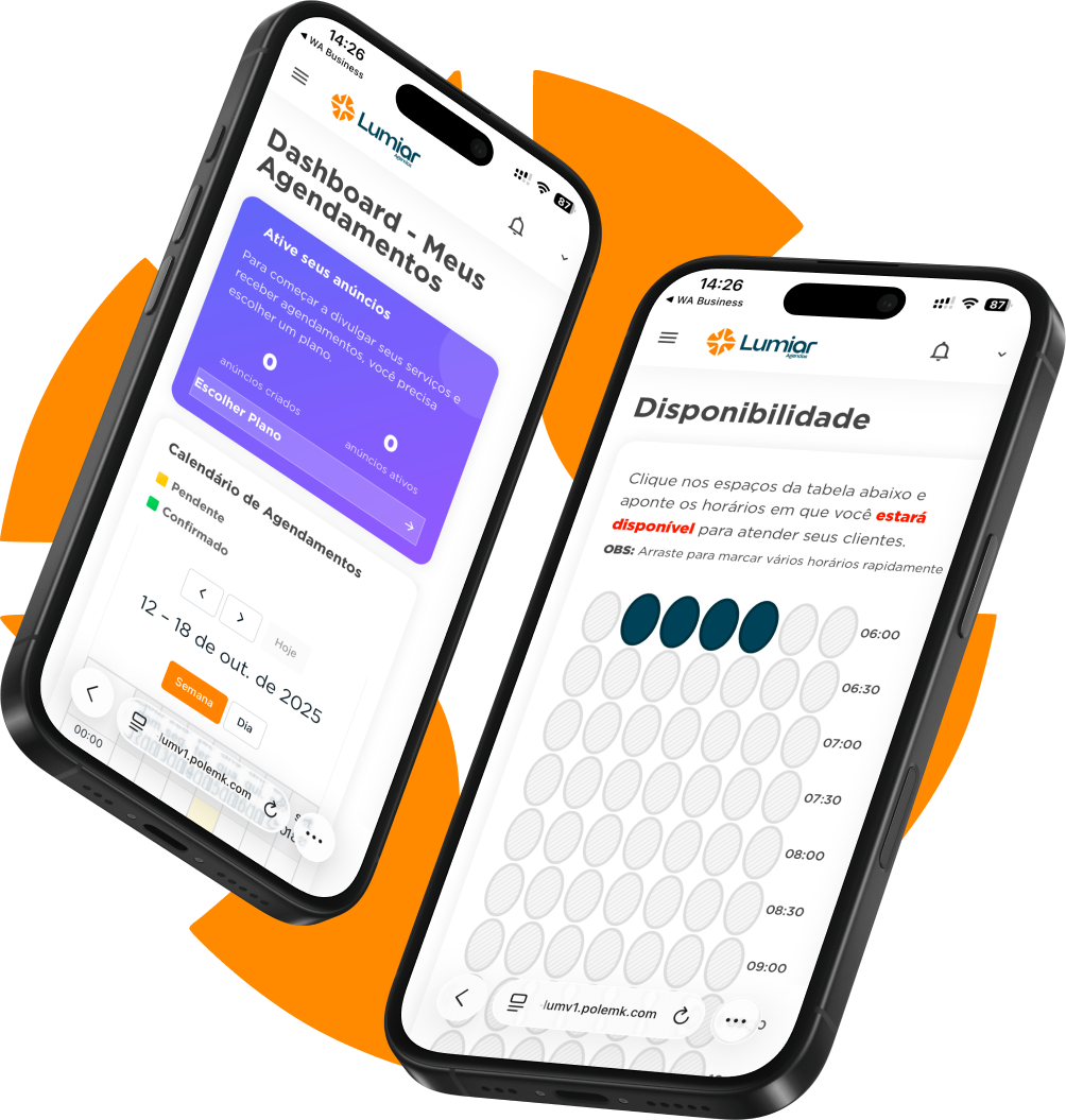 Ao fazer parte da Lumiar Agendas, você não está apenas organizando sua agenda: você está se posicionando em uma vitrine qualificada, pronta para receber novos clientes que nós trazemos até você, todos os dias.