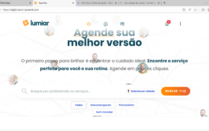 A Lumiar Agendas funciona como um grande shopping de bem-estar online, com centenas de usuários ativos que podem acessar, a qualquer momento, as “vitrines” onde o seu perfil estará exposto.
