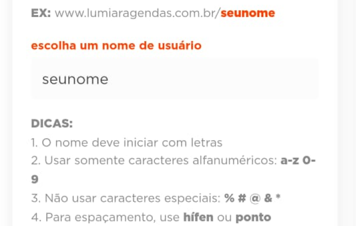 Tenha um endereço profissional (ex: lumiaragendas.com.br/seunome) para colocar na bio do seu Instagram ou compartilhar em grupos de WhatsApp, facilitando a sua vida e dos seus clientes.