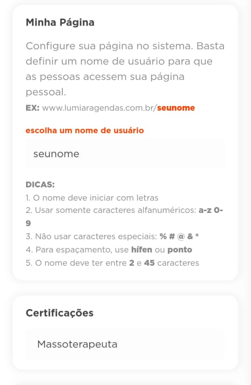 Tenha um endereço profissional (ex: lumiaragendas.com.br/seunome) para colocar na bio do seu Instagram ou compartilhar em grupos de WhatsApp, facilitando a sua vida e dos seus clientes.